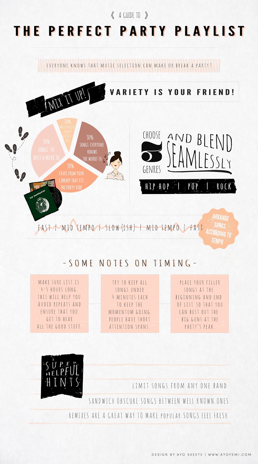 Mixing it up a little this week. In lieu of a mixtape, I've got this fun little guide on planning a great party playlist. Enjoy! View full size PDF here. Some information via here, here, and here. |